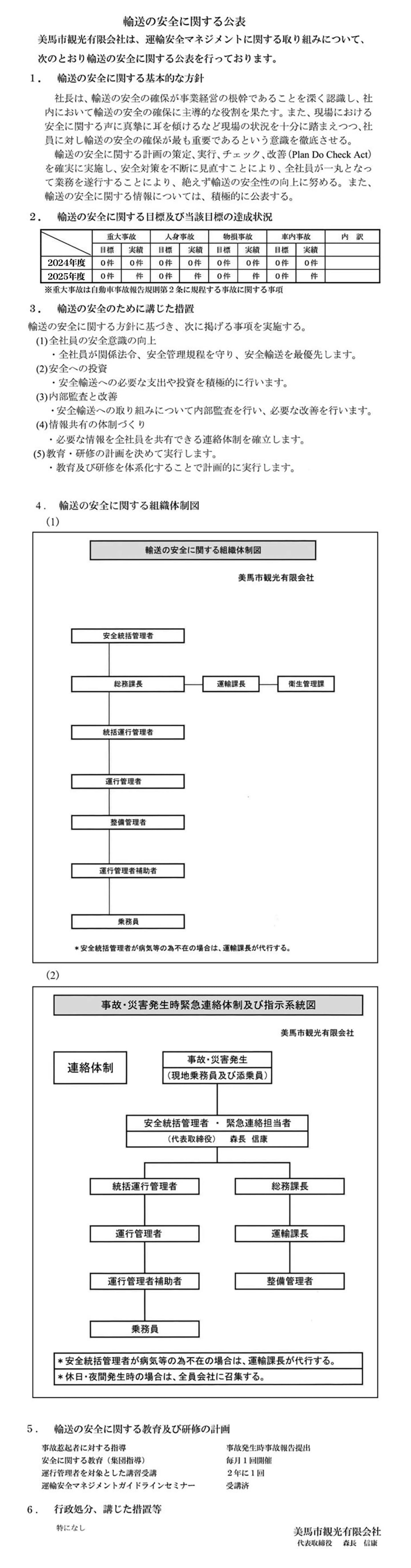 輸送の安全に関する公表